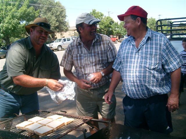 NG Gemeente Boshof se basaar is hierdie jaar voorafgegaan met 'n optog deur die dorp van waens waarop wors en broodjies gebraai en pannekoek gebak is.